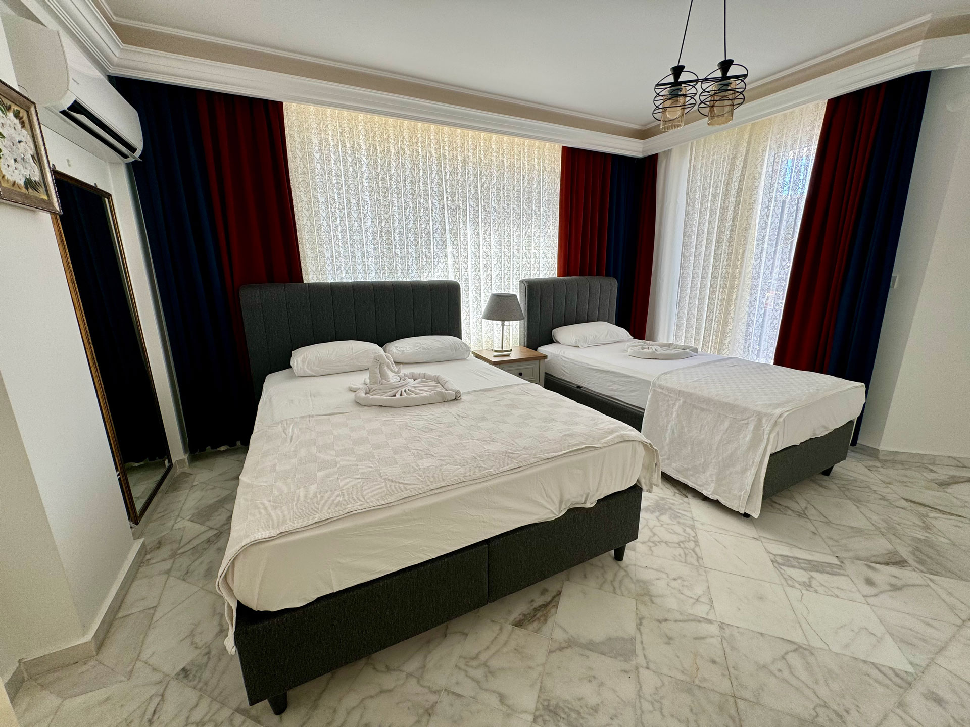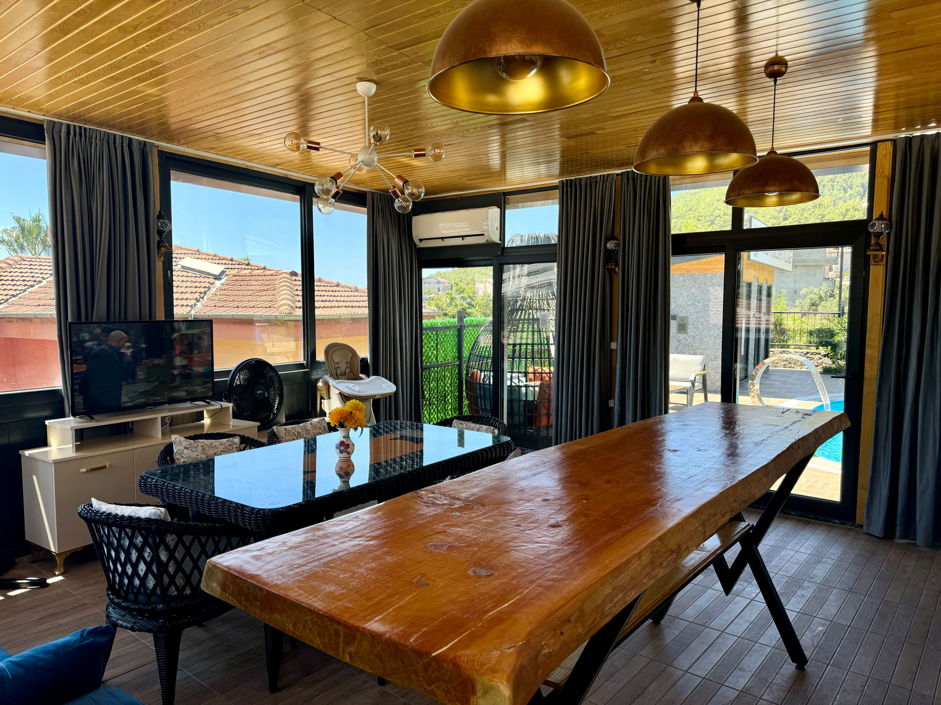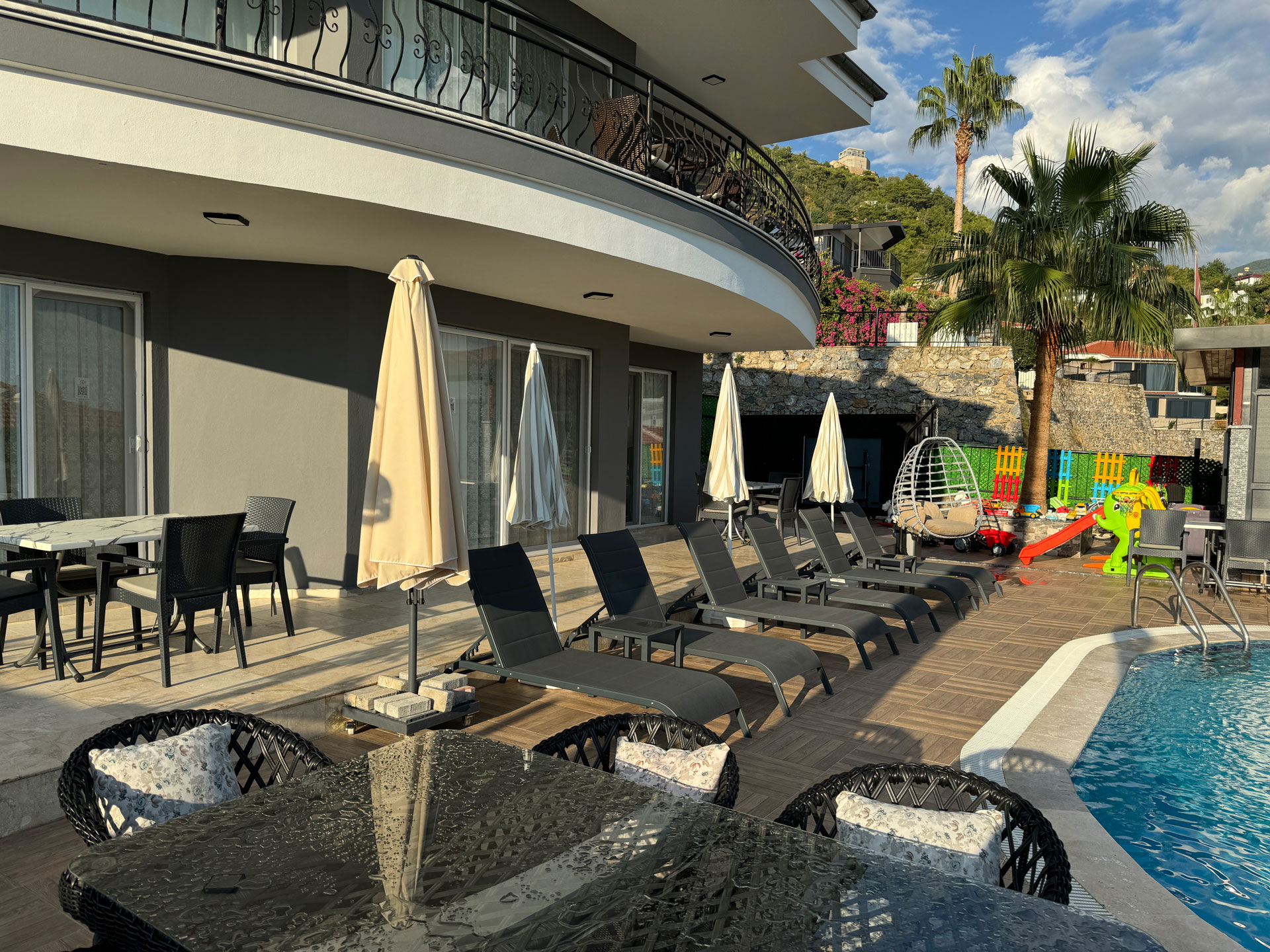 2024 yılında hizmete giren iki katlı villamız, 4 yatak odası, 1 oturma odası, tam donanımlı mutfak ve geniş yaşam alanlarıyla konfor sunuyor. Özel havuz, güneşlenme terası ve barbekü alanıyla keyifli anlar yaşayabilirsiniz. Klima, TV, ücretsiz internet, çamaşır ve bulaşık makinesi gibi olanaklarla evinizin rahatlığını hissedeceksiniz.